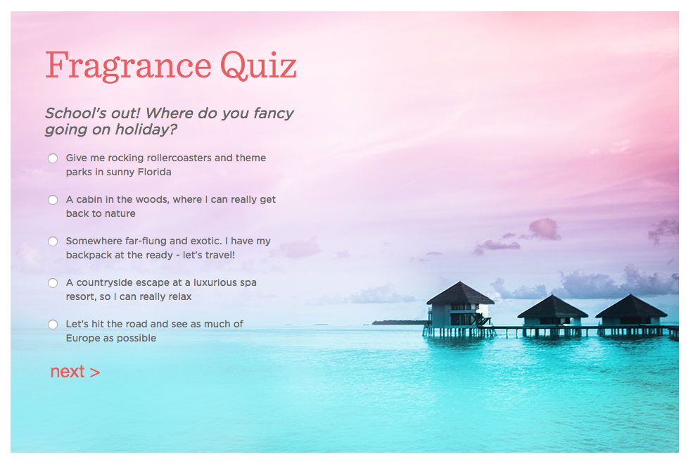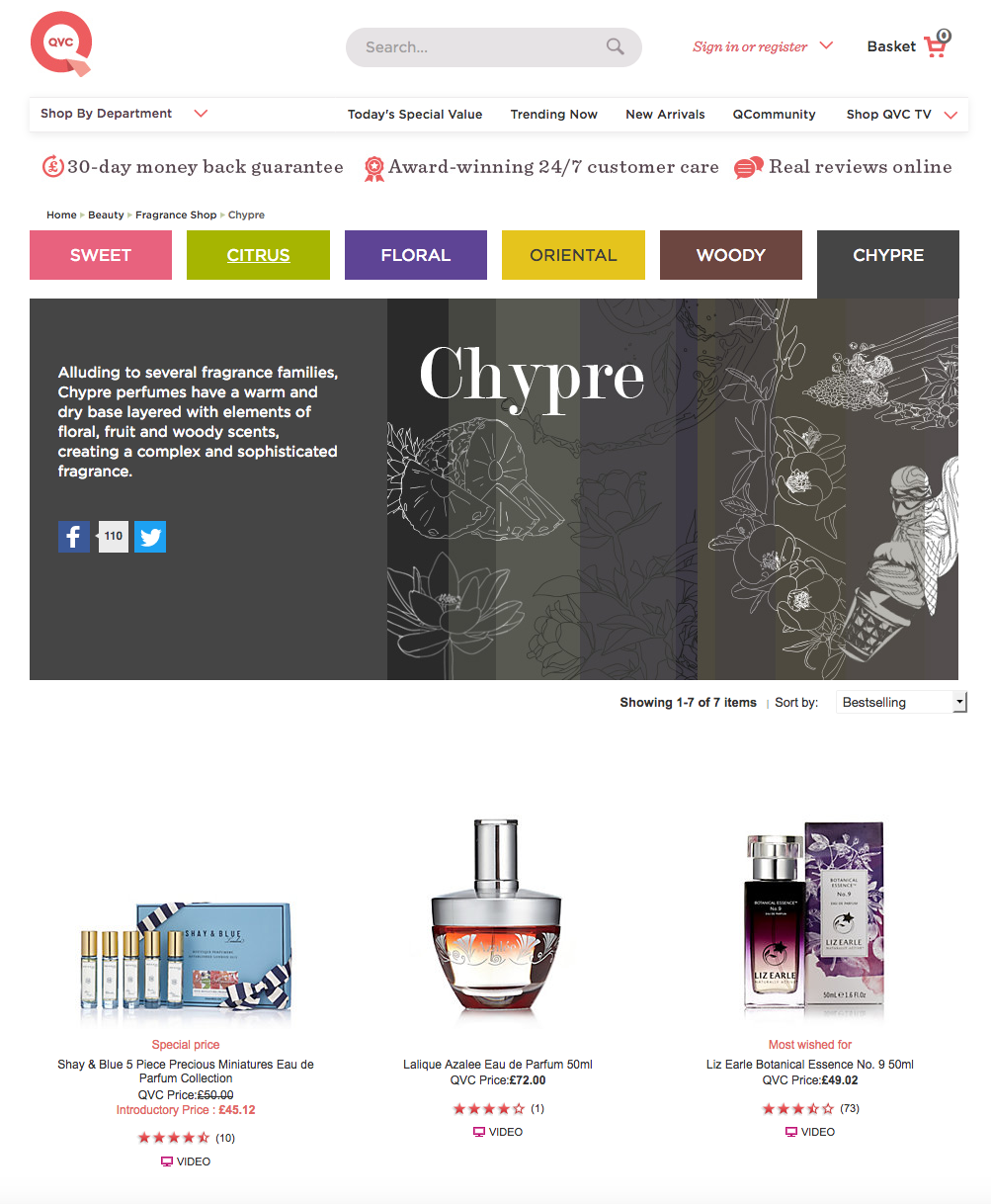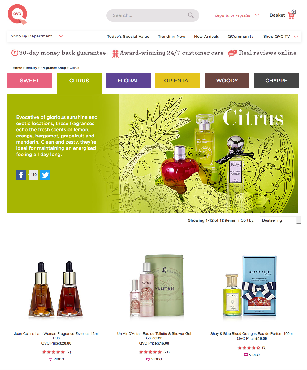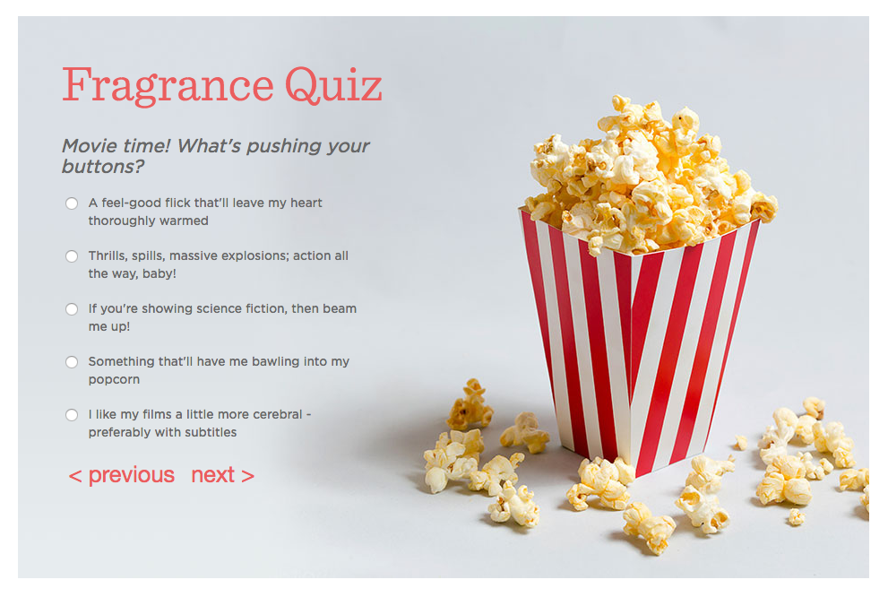 We were asked to come up with a campaign to help drive sales for the fragrance sector within the QVC Beauty department. After several weeks of research and storyboarding I came up with a personality quiz designed to engage customers and guide them toward suitable fragrance products, presented to the beauty buyers and board. They signed off on my fragrance quiz idea so it was time to get to work on a strategy for implementation.